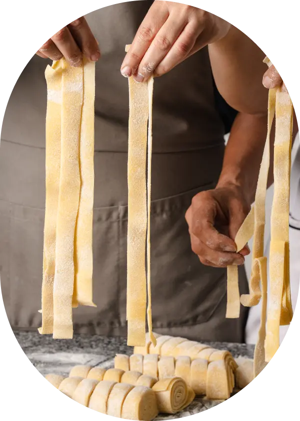 Con le paste lunghe all’uovo – come tagliatelle, pappardelle e tagliolini – i nostri chef hanno l’occasione di esprimere il meglio della tradizione e della creatività, realizzando ragù classici come il bolognese, ma anche sughi stagionali a base di cinghiale, salsiccia in bianco, funghi, o verdure dell’orto.